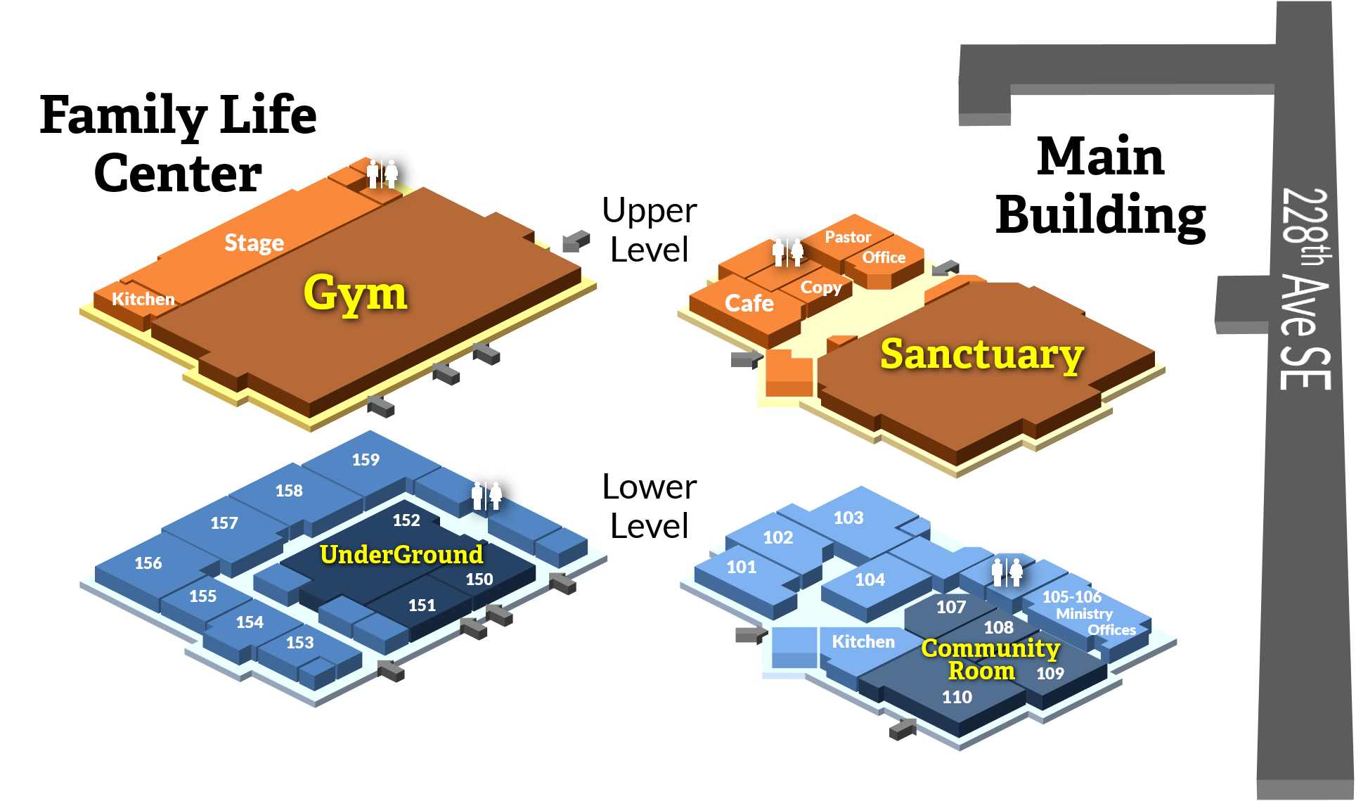 - Enter the church parking lot via SE 17th Street.